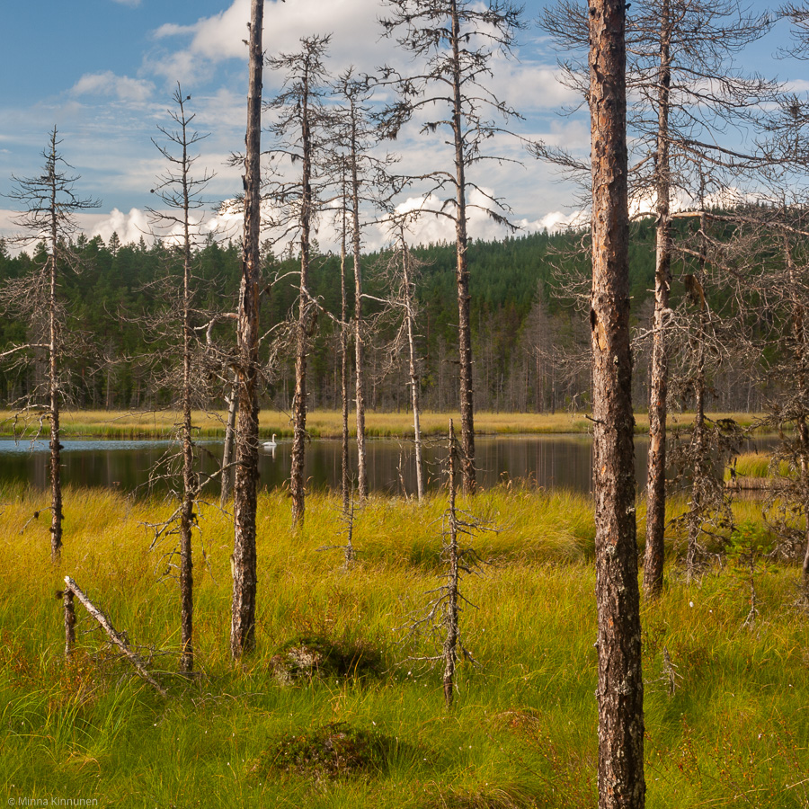 Strange feeling. While I had this great urgency to take some pictures, at the same time I was almost unmotivated to do it. In fact, unmotivated to do pretty much anything. But I haven’t lost all of my will power yet, so at first I went for a long walk while it still was overcast, and then in the afternoon when the sun started coming out, I drove to a nice little tarn that I haven’t photographed yet. Or maybe it’s not so nice – it’s called Elaktjärnen, ”mean tarn”. I tried to figure out why it would deserve such a name, and the closest I could come was that it was surrounded by a lot of dead trees but I assume they’re dead because of beaver activity; there was a beaver hut on the shore (probably abandoned a long time ago already).