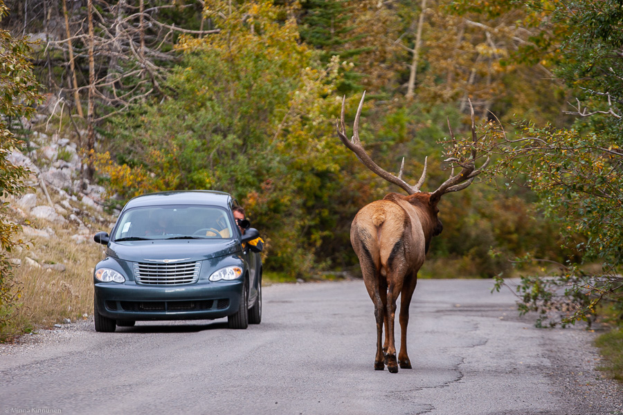 Elk bull at the Vermilion Lakes Drive (our car is identical to this one in the picture)
