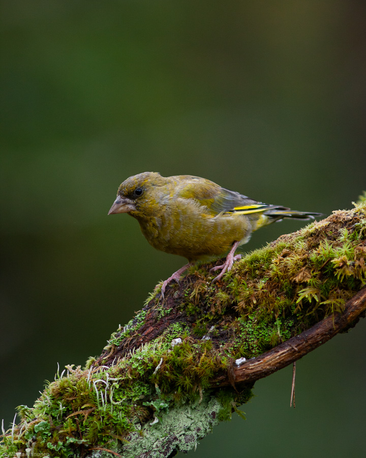 I had never before seen greenfinches so I was very excited of course. When I approached the feeder, the finches were the first ones to disappear while the tits tolerated my presence. One willow tit kept pecking at the seeds when I was less than 2 m away from it. But the greenfinches were trickier so I wasn’t sure how I was going to get the pictures, I wasn’t going after any major artwork but I just wanted to document the species. I started the easy way, which is opening my living room window and shoot from there. It’s too far, but you can recognise the species in the picture. Having gotten some shots, I decided to try a bit closer. So I hid behind a small spruce and although the birds initially scattered, they soon came back. So I got some shots a little bit closer and I was happy.