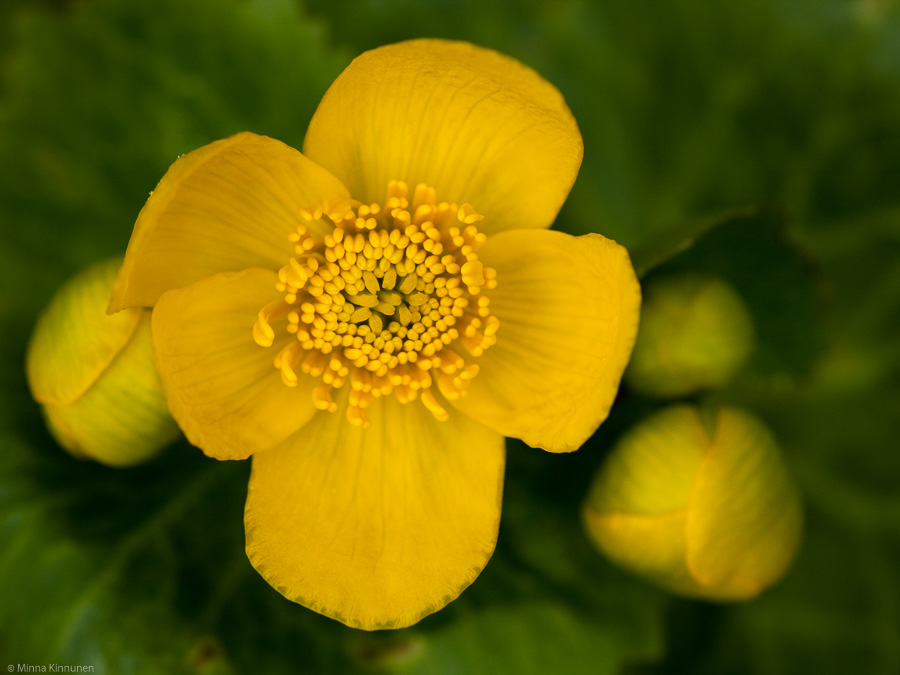 The marsh marigold are starting to bloom, but my problem was much the same as I faced with the wood anemone – what I could I do with them that I haven’t already done? I didn’t want to take the same pictures all over again. Then I thought of the leaves, I noticed last week how pretty the leaves are and how they cradle the buds so I wanted to find a way to make the leaves an important part of the picture, and not just an incidental detail. It’s easier said than done, because by the time the flower is mature enough to be in full bloom, that cradle effect is long gone and insects will have taken their toll on the aesthetics. I finally settled with this flower which had just opened and by focusing as close as I could without clipping the petals I was able to fill the background with the leaves.