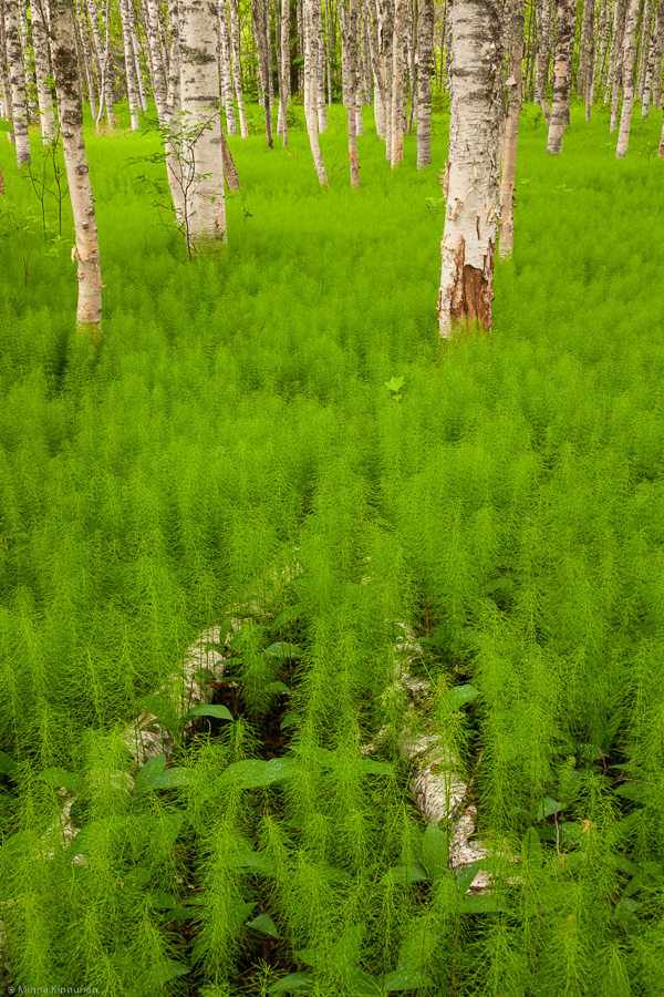 I was going to only take these pictures I missed yesterday and go home, but I decided to continue to Ljusnan anyway to see if I could do anything about the old riverbeds in overcast weather, and most importantly, to see what the birch forest would look like with the lily of the valley in bloom. However… when I got to the birch forest, I found that there was almost no lily of the valley in sight. Everything was covered with wood horsetail, I mean if I was talking about a river of grass earlier, then this sure was a sea of horsetail! I’ve seen horsetail before but never like this, it was almost surreal.