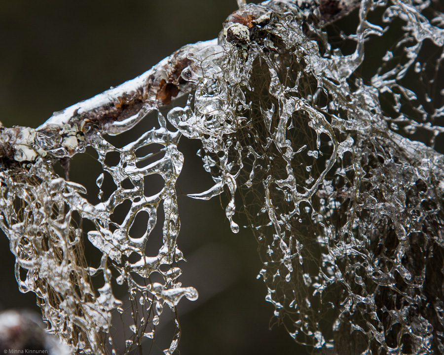 I went for a walk right after breakfast, didn’t want to risk that it would get warmer during the day and the ice casing we have on everything right now would melt away. The trails are wonderful right now – they really are hard as ice, it’s like walking on tarmac. Except 10 times more fun. So instead of just making a return trip to the Moose Lake, on the way back I made a de-tour to Ryggskog to extend the walk and it was just as well because I found my best photo ops here. The 24-105mm lens is not ideal for close-up work that this ice decoration would’ve required, but the ice can be seen in the pictures and I’ll settle with it. A documentary picture is better than no picture at all.