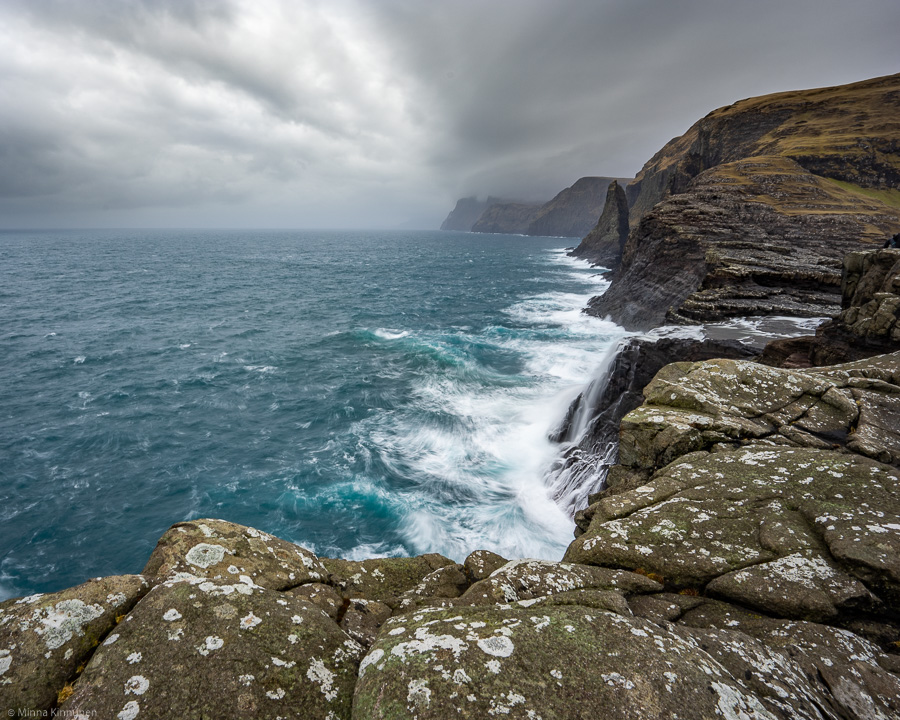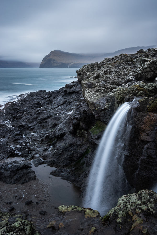 We spent the first morning in Syðradalur, it’s a place with lava rock formations and a small waterfall and an island in the distance for background. The cliffs were horrendously slippery, I still can’t believe I didn’t lose my balance at any point. Careful is the word!
