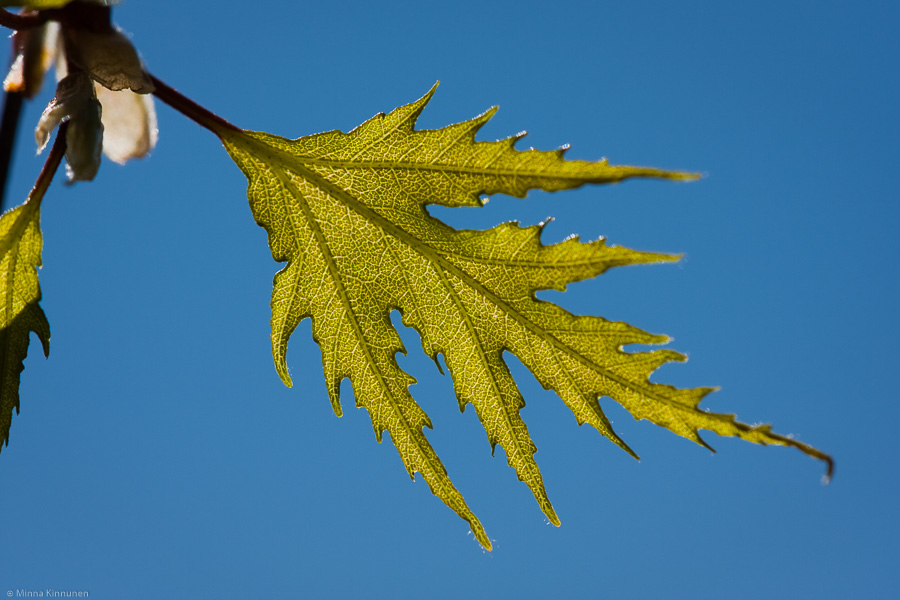 After all the warm weather last weekend, I’m having a hard time figuring out what to wear now. It’s not as warm but the sun is shining, so do I need the middle layer or not? I decided to have faith in the sun and left out the middle layer and I was very nearly freezing. The wind isn’t helping. It didn’t help me when I tried to shoot the young birch leaf either, the branches were dancing like crazy and I had to hold the branch with one hand and shoot with the other. The Sigma 150mm macro is not made for one-handed shooting, let me assure you… but the shutter speed was fast enough to pull it off. More DOF would’ve been a bonus, but the leaves are growing so fast that either I grab the opportunity when I see it, or wait until next year.