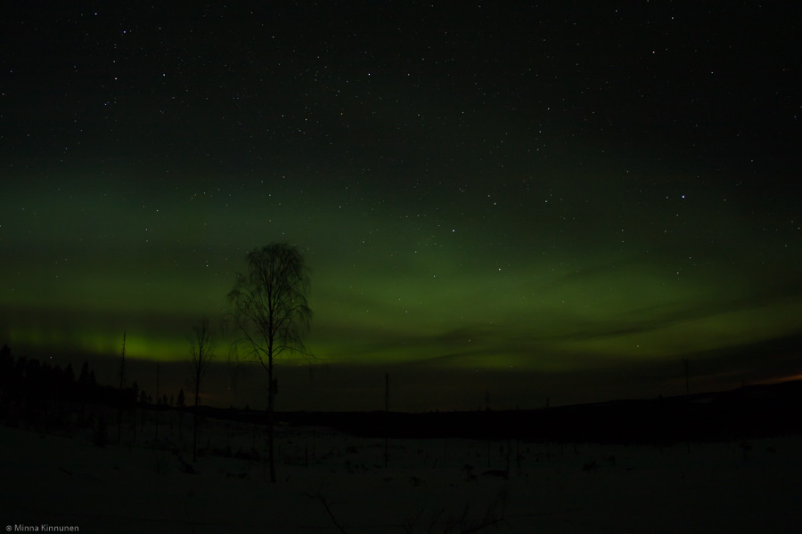 This is peak time of the year for auroral activity. It was a clear night and the aurora forecast confirmed the high activity, so I packed the camera and set out to the closest spot with an open view towards north. I finally got some half decent pictures of the northern lights! I tried it last year, but the results were poor at best.