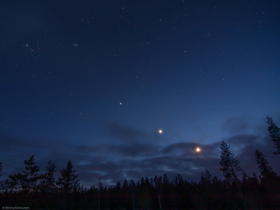 And then when I got my spot, the crescent was behind the clouds. The net effect is that you’d think it’s another bright planet, there’s nothing that tips you off that the bright spot lowest on the right is the moon…