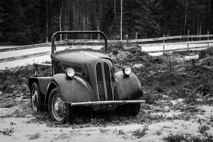 I pass the Föne football field quite often during my walks and bicycle rides and every time I do, I look at this old car outside the field and think that one day I will have to shoot it. But as it often happens with subjects like this, I’ve never gotten around to picking up the camera when going past it. But today, in the bleak weather and with the 365 project, it was just perfect!