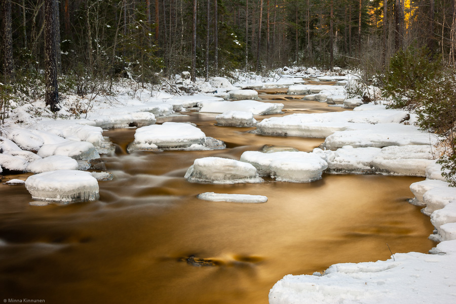 Just about the only thing I seem to photograph these days is water. We are still waiting for proper snow (half of what we got on Monday is now gone) so the scenery is not looking photogenic by any means – unless grey and dreary is your cup of tea, that is. So once again, I drove to Österhocklan and expected to see even more ice than last weekend, and got it. It was a sunny day and the sun was shining on the creek, but instead of lifting up the scenery it just made it worse (for me, anyway). The contrast between the dark water and sunlit snow is a nightmare to handle, so I didn’t even try, just looked for the shaded spots and/or waited for a moment for the sun to disappear behind the trees. And when I found a subject, on with the B/G filter and colorise. At least I’m finally getting value for money with the filter… I tried with the normal polariser as well, but there really is such a thing as too much polarisation – the contrast was once again too much between the snow and the water. Since the B/G filter doesn’t remove the glare like the normal polariser does (it just colours it), the contrast is much easier to handle. It’s a fair question to ask why I insist on using a polariser at all, and I don’t really have any reasonable answer. I just simply don’t like glare, unless it contributes to the image. And I rarely think glare contributes to the image. To be honest, I think I’m close to over-using polarisers, so I will have to make a concious effort to cut back a little. But as long as we don’t have a lot of snow, my only consolation is playing with the B/G filter!