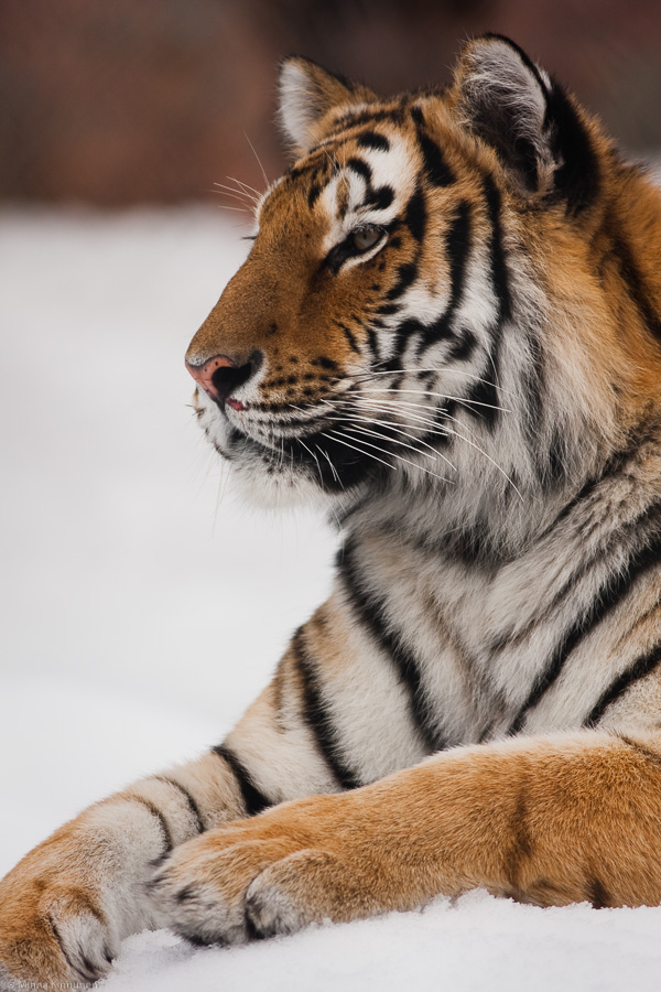My secret weapon was the 300mm f4 lens. Shooting wide open of course, so no margin for error. The weather was on our side because it was overcast, otherwise the chain link fence would’ve been impossible to fade out. It turned out that 300mm was a tad too much at times and I had to make most of my compositions in vertical format, otherwise I didn’t stand a chance to frame in an animal without cutting off any important body parts. The tigers were so close that I ever struggled to get a whole head in the frame! But other than the photographic dilemma, it was pretty amazing to be so close to the magnificent animals. And just when I thought that they were looking really cuddly, one of them yawned right in front of me and revealed a sharp line of pearly whites, complete with 4-inch fangs. So that chain link fence was kinda nice, after all…