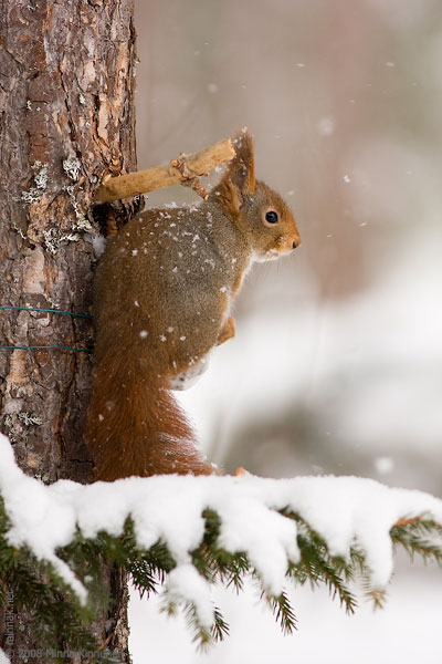 So now you also know my setup. The green wires to hold the cup under the perch – and at this point I can also confess that this particular perch (the branch above the squirrel, not below…) is actually a fake. Not sure if you can tell it if you don’t know?