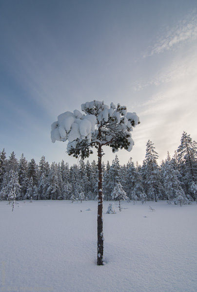I wanted to find some new places, so I drove to Västersjön in Hamra today and took the snow mobile trail from there. I did part of this trail last year but now my plan was to ski to the Voxnan river, which wasn’t possible last time because the trail wasn’t used. I was hoping for some nice landscape as the trail crosses some mires, but it turned out that it wasn’t particularly photogenic anyway. The clearing cloud cover didn’t help, it was one of those strange days when there’s snow falling without any significant clouds. All the while the sun wasn’t completely out so the light was kind of 50-50 and I had no ideas what to do with it. Better luck tomorrow – the forecast says overcast, yes please.