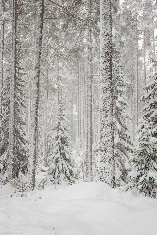 This weather doesn’t happen often so I wanted to make use of all of the daylight and took off for another walk. The wind was steadily increasing and the gusts ripped the snow off the trees and created momentary curtains with zero visibility. The air was just simply full of snow and the light was fading fast even though it wasn’t anywhere near sunset yet. The forest was most definitely not crowded and I got to blaze my own trail through the snow. In fact, just about the only people I’ve seen today were those who were ploughing the snow. Plenty of that…