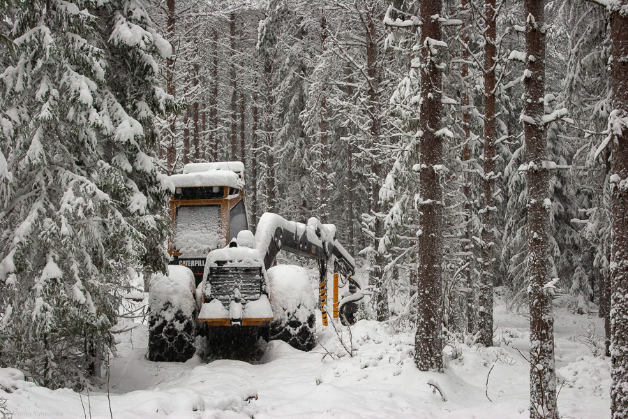 As I was making my way, suddenly a foreign shape emerged through the snow. A forest machine – they have started cutting the forest near my house. A few hundred meters further I came across another, so it looks like they mean business. The monsters are loose.The picture may appear a bit dark, but I have left it like that on purpose. There really wasn’t much light to go around, in fact I was really struggling with the shutter speeds. At ISO 800 and F6.3, I only got a 1/40 shutter. I ended up with a sharp image thanks to the short focal length and image stabilisation, but ideally, I would prefer faster shutters. Usually when it’s snowing, I set out without the tripod because the idea is to catch the falling snowflakes, which requires fast shutters. I’d rather not go under 1/100, but it also depends on how fast the snow is falling. So in the above image, there isn’t a falling flake to be seen, although trust me there were plenty around. The first image in this blog entry on the other hand is showing plenty of flakes!