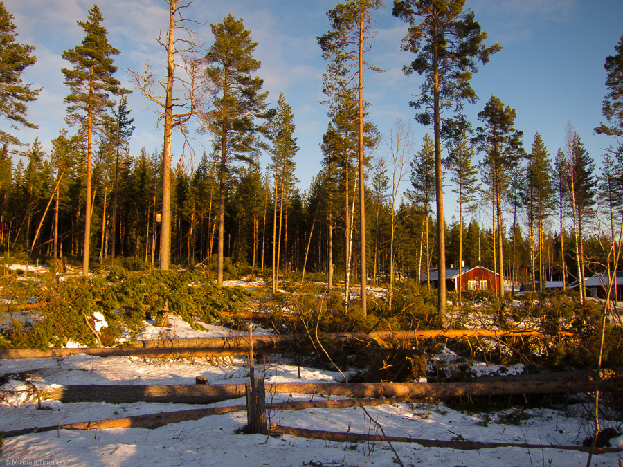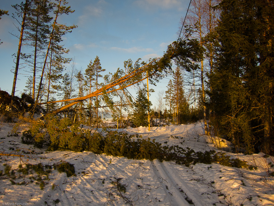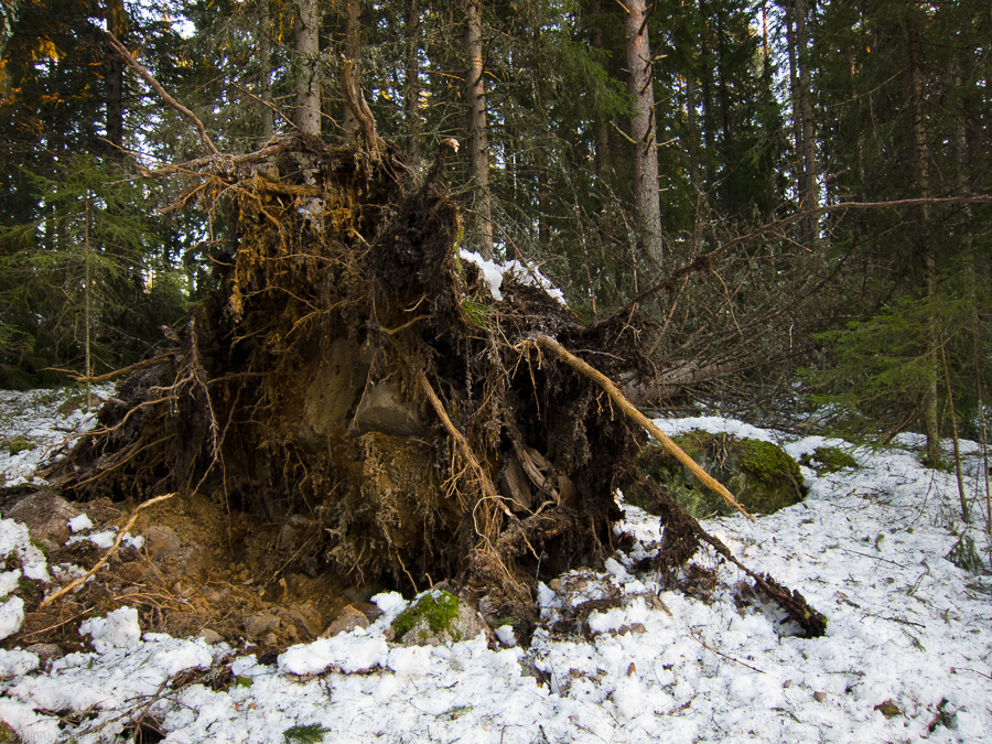 Considering the havoc from a photographer’s perspective, things are looking pretty bleak. If I thought yesterday that the snowcover was spoiled, then today you can hardly even see the snow from under all the debris. But maybe in some places which were spared from the hurricane, new snow can still rescue the landscape and give me something to shoot this winter. But this forest closest to me, which has given me so many pictures through the years, it’s gone. It’s just a wide open space now.