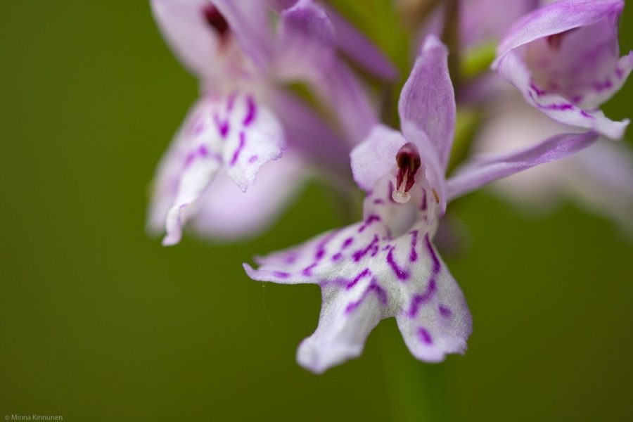After all the hyping I’ve done about the lesser butterfly orchid, I’m almost afraid to show the picture – risk for an anti-climax! But here’s the deal. I wanted to get a good close-up – a real macro, in fact – of the flower and the long spur. But showing the flower and its spur would require a side view and I don’t think it works, so the option was to find two flowers where one is shown from front and then the other one only by its spur. I was going to get all the petals in the frame but accidentally pushed the camera too close and got this ”clipped” version and liked it, so I figured it’s worth trying. The question is, does the oof spur carry the dead space on the left or is this just weird? I have versions where all the petals are in, as I originally intended.