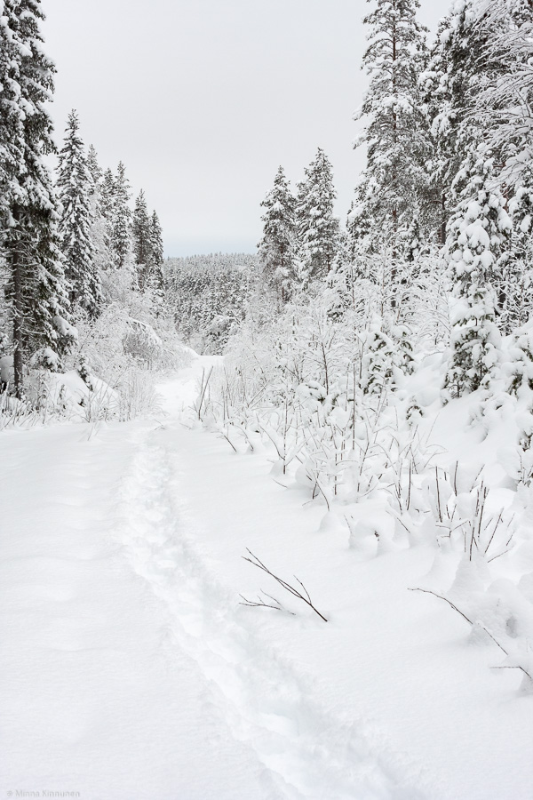 But it was all worth it, and I don’t mean just for the chocolates. The road gets close to the Kvarnån brook for a moment and quite unexpectedly, I found some trail markings that continued to follow the brook. I haven’t seen this trail on any map, which is a bit odd because I have some old maps which show trails that are almost completely overgrown now. Will have to inspect the trail closer in the summer, maybe there are some photogenic spots further downstream…