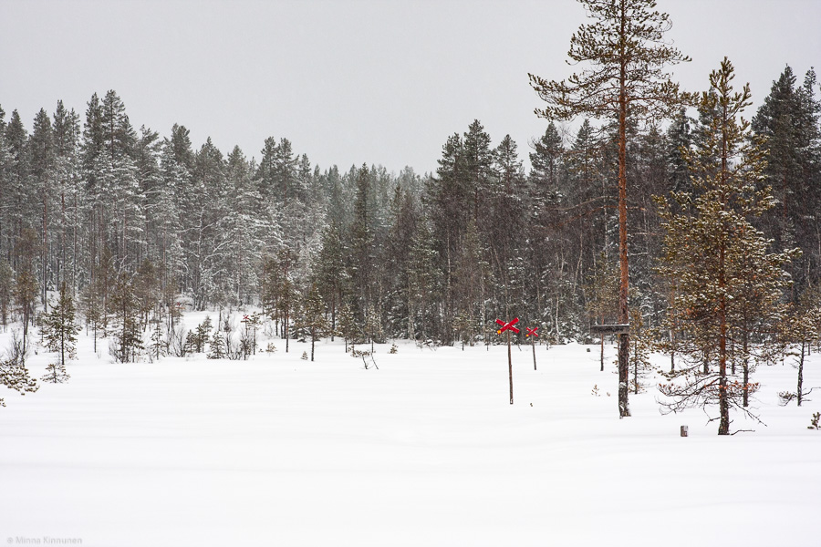 If I thought that yesterday was wonderful, then today was even better! More snow and less wind. When I set off, the trails were completely snowed over in some places as the snow mobiles hadn’t been around yet. The snow wasn’t too deep though to spoil skiing, so I enjoyed every second I spent out there. And after a while, the snow mobiles appeared and the tramped snow they left behind was even better to ski on.