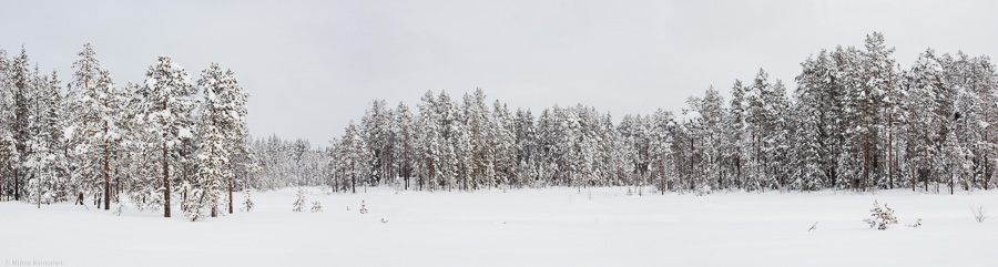 Photographically this route is not quite as good as the Moose Lake, but yesterday I went to Älgsjön and had very little to show for it, so today all I wanted was to have a nice hike and maybe take a few snapshots along the way. And the hike certainly started well, I got a real kick out of the wide open spaces and the new snow. It was snowing and there was almost no contrast at all, so the trail is barely visible in the picture.