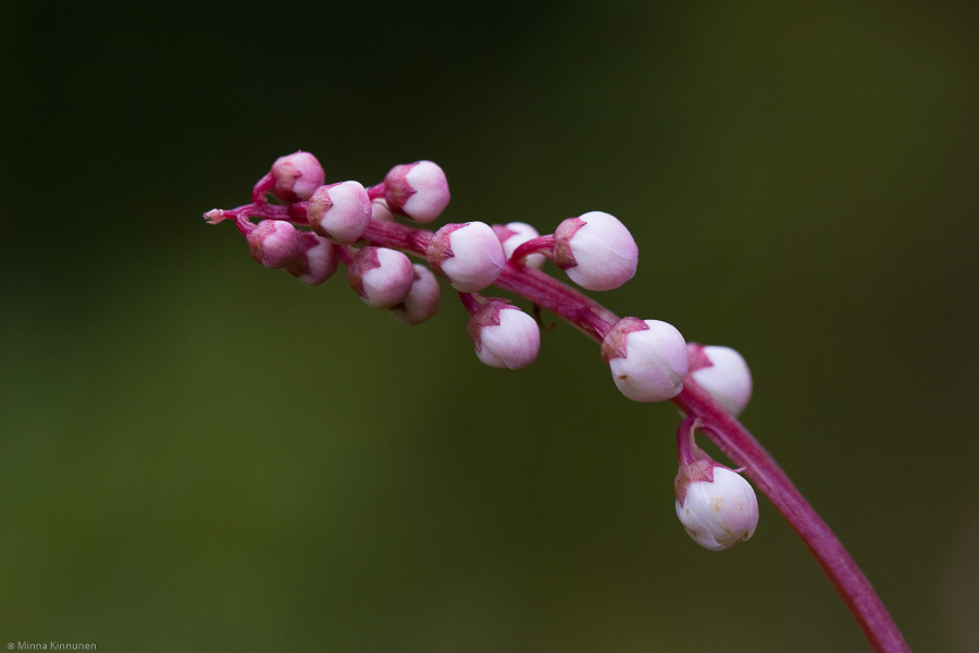 Last year I discovered one-flowered wintergreens (Moneses uniflora) and round-leaved wintergreens (Pyrola rotundifolia) too late to shoot them, so I was determined to get them this year. Only problem was, I wasn’t seeing either of them in the locations where I found them last year, but after exploring the forests around me, I found them elsewhere. So I got my one-flowered wintergreens, but none of the round-leaveds showed any immediate photographic potential so they are still on my ”wanted” list. But as if to compensate for it, I have discovered two new wintergreen species – the green-flowered (Pyrola chlorantha) and then today, the common wintergreen (Pyrola minor)! That’s a lot more wintergreens that I was expecting. I don’t know why I haven’t seen these flowers before… my only theory is that now that I’m trying to learn botany, my eyes have finally opened up to see the flowers around me. It seems like not a weekend passes by without a new discovery. That can only be a good thing!