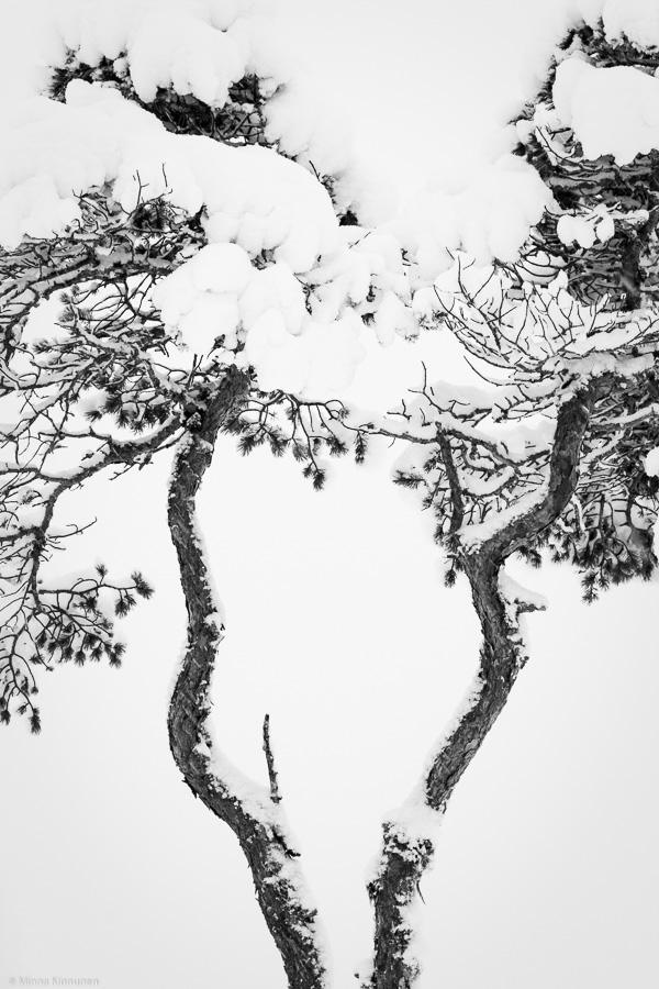 Winter 2010-11 was unusually cold. When the cold weather arrived in November, it never let go until February and when it was cold, it was really cold. And without any warmer periods, the snow just kept piling up. This picture is from one of my many skiing trips, during a day with overcast skies and a little bit of snowfall. That kind of weather turns the world into monochrome, which gives you good opportunities to strip the pictures to the bare necessities. I’ve reprocessed the picture since first publishing it, deliberately overexposed and then converted to b&w (there was only very little colour in the branches to start with).